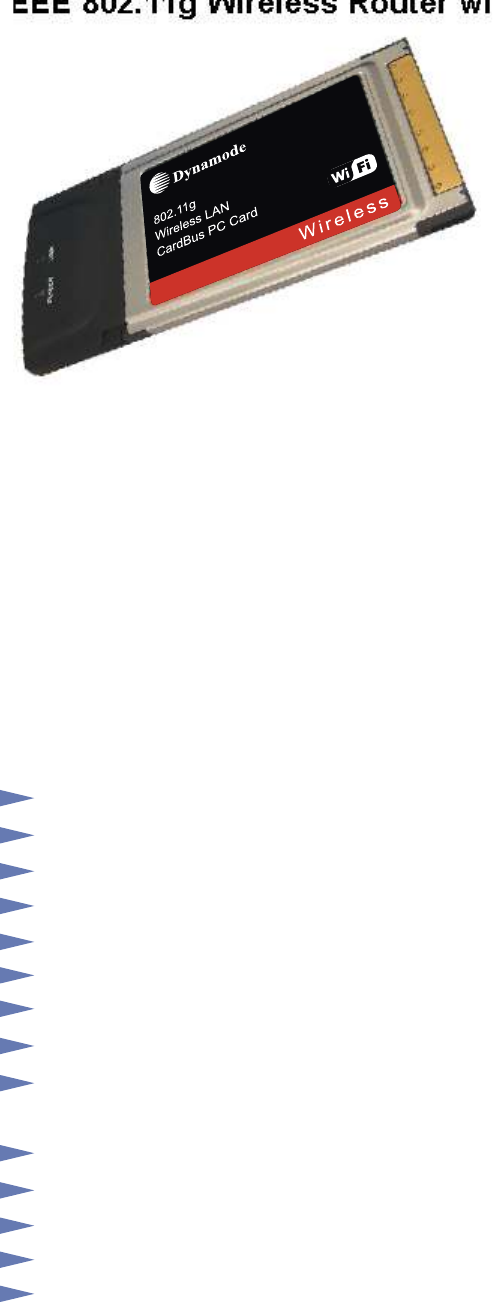 Fully compliant with the new IEEE802.11g Wireless LAN Standard, the 11g CardBus PC Card is five times